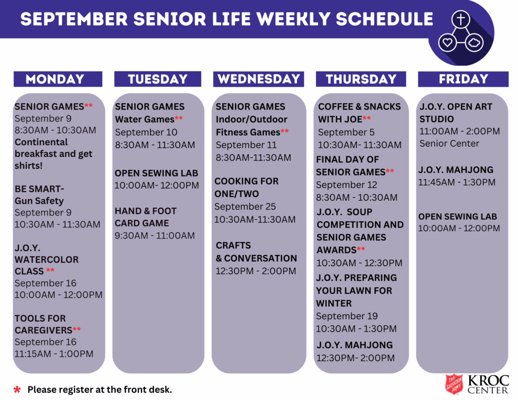 Our goal is to armor older adults with the knowledge and tools to live a healthy and meaningful life which will be measured by participation, member feedback, and survey responses.